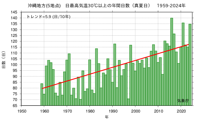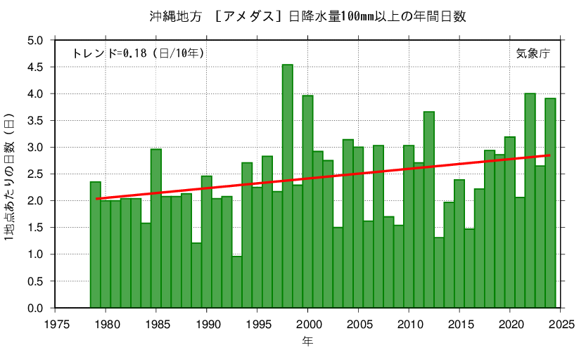なお、詳しくは、沖縄気象台のHP(沖縄地方の気候変動 これまでの変化(観測事実))をご覧ください。(沖縄気象台のページへリンク)