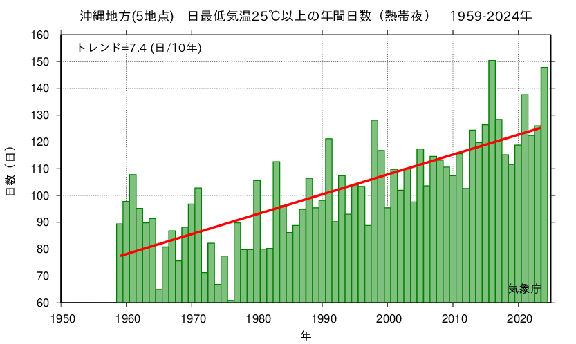 那覇、名護、久米島、宮古島、石垣島、西表島、与那国島の7地点平均。