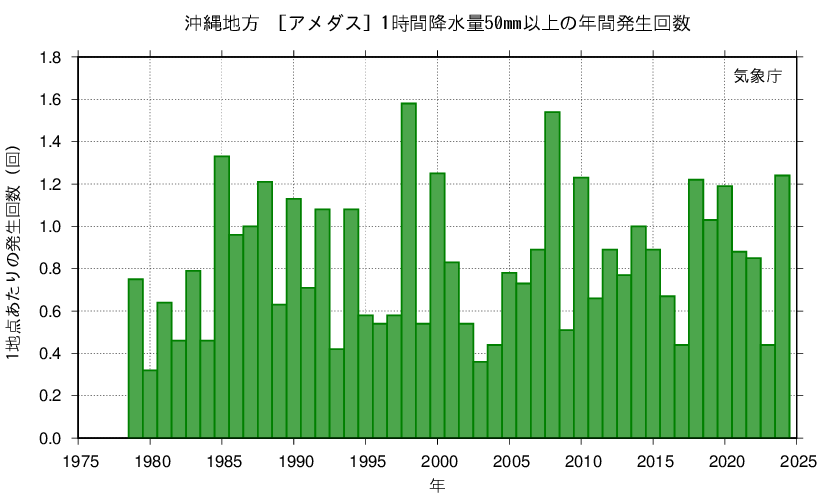 那覇、名護、久米島、宮古島、石垣島、西表島、与那国島の7地点平均。